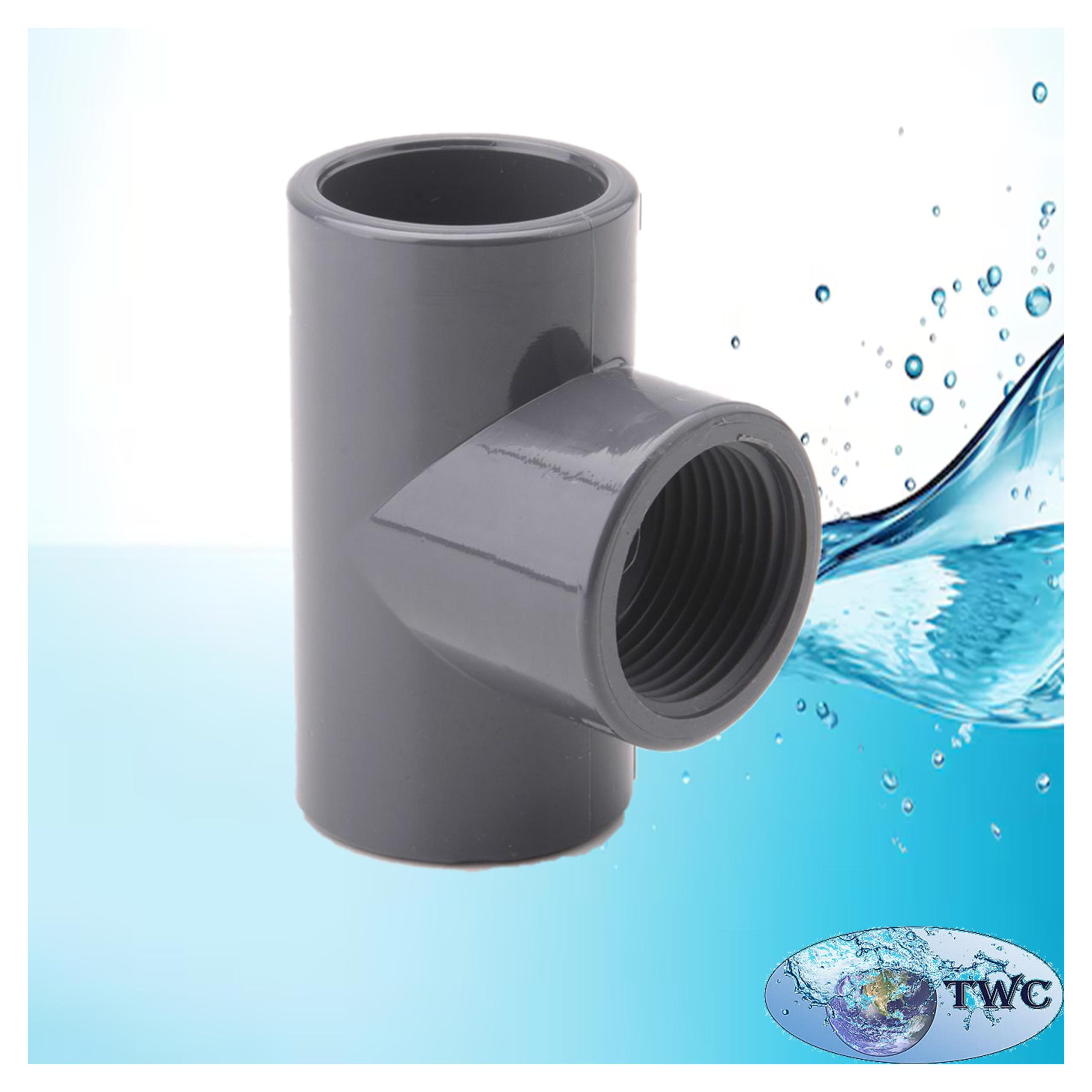 To connect two PVC pipes with a third female-threaded outlet at a 90° angle, you will need the following. The Adaptor 90° tee with female thread off-take 25mm x 3/4″ . These are also commonly referred to as a PVC 90° Tee Plain/Threaded or uPVC Solvent Weld Plain/Threaded Female Tee. This T-shaped fitting has two “plain” solvent-weld sockets for connecting to PVC pipe, and one female-threaded outlet for a mechanical connection.