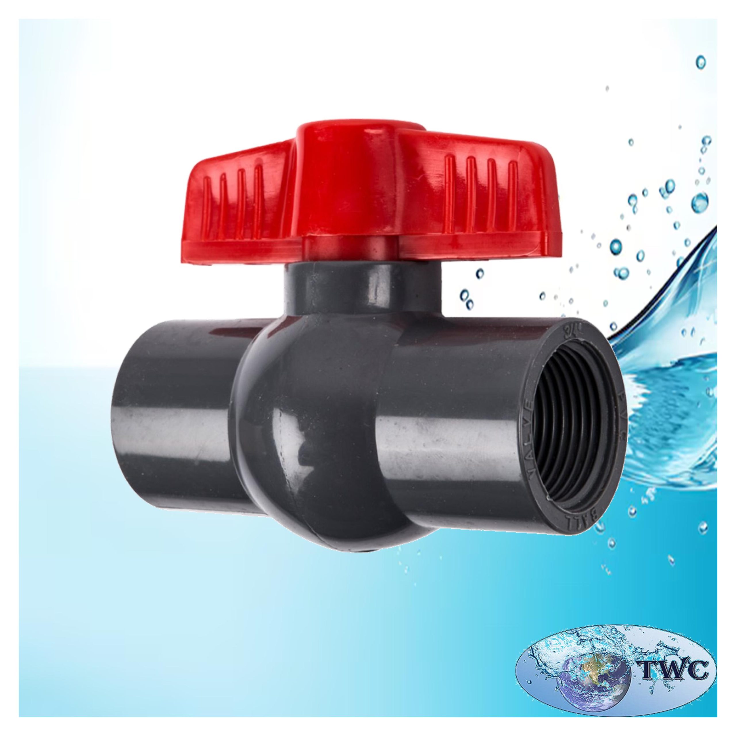 Firstly one piece UPVC Compact ball valve 15mm threaded available is solvent glue on or threaded. BSP threaded and come standard with a PTFE ball seat. As a cheap and easy alternative to brass or stainless-steel ball valves this UPVC ball valve will give you the ability to stop and continue the flow of liquid in your pipeline by manually turning the handle.