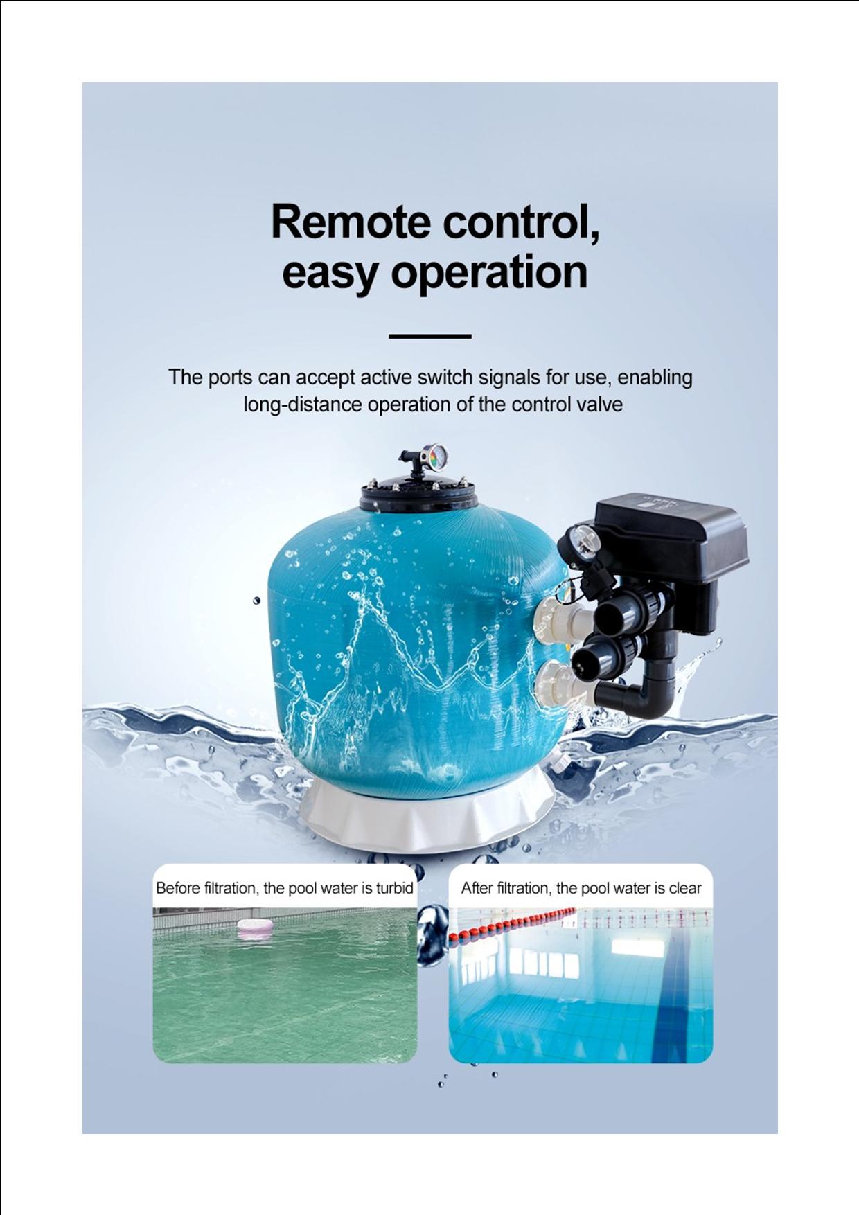 The compact size of Runxin F139A Automatic swimming pool valve 24m³/h allows it to be paired with a sand tank to create a portable filter device, making it easy to access.
